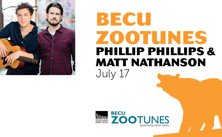 Enter for a chance to win a VIP concert experience to the 7/17 Phillip Phillips & Matt Nathanson BECU ZooTunes concert! BECU ZooTunes VIP pack includes 4 VIP tickets (includes VIP access badge and tickets to concert), ZooTunes blanket, 4 ZooTunes stadium cups, 4 drink coupons for the beer/wine garden, and 4 vouchers for meals at the Zoo Grill. The value of the BECU ZooTunes VIP pack for four is $500.
